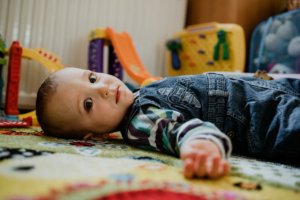 Tomi, ahogy leszálltunk a villamosról már aludt is. A rajtban többen nézték, hogy a hangzavar ellenére milyen békésen tud aludni. Második gyerekként már igazán edzett, Sára időnként duploval kalapált mellette, míg ő aludt.