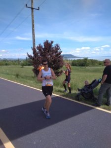 A futás eleje nagyon simán ment, a domborzati viszonyok nehezítettek valamennyit. Feldobott a tudat, hogy a férjem a fél távnál lévő frissítőponton várni fog. Utána annak örültem, hogy már hosszabb távot futottam mind eddig bármikor. Szigliget után volt egy lélekgyilkos szakasz. Unalmas és monoton, de szerencsére csak pár km hosszan. A 19. kilométernél volt egy kis eltérés az UB útvonalától, hogy meglegyen a 21 km. Pont a tó felé kellett szaladni egy rövidet, nagyon szép balatoni panorámában volt részünk. A fordító után pedig már lehetett látni a befutót. Egy pillanatra el is érzékenyültem, hogy ez az! Megcsináltam!
